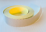 Our high intensity reflective hard hat and helmet tape is flexible, conformable, stretchable and affordable making it perfect for adding visibility and reflectivity to hard hats and helmets. This is a type 3 high intensity product that is 3 times brighter than standard engineer grade tapes. To apply, simply cut the amount you need, peel away the backing, and apply to your helmet or hard hat. As you can see from the pictures below, the tape is able to conform over uneven surfaces and compound curves. We carry white, yellow and orange.