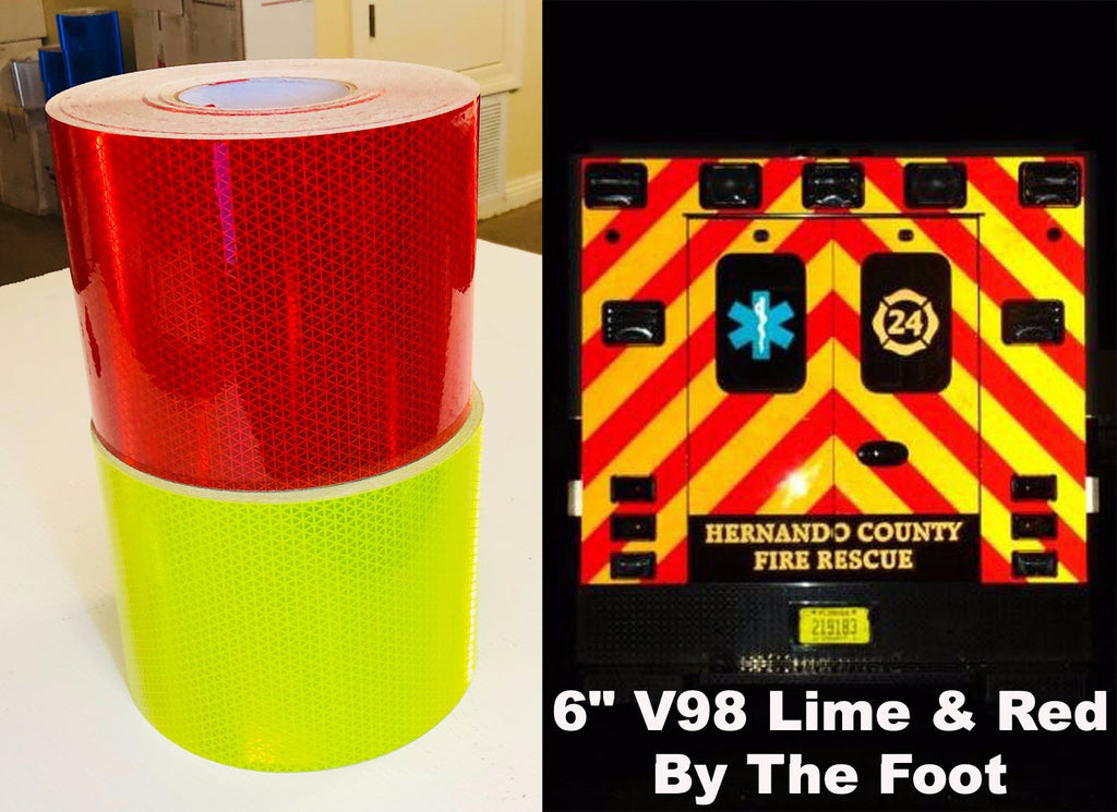 Red, Fluorescent Lime, Fluorescent Orange, Blue, Green, or White 6" Wide V98 Conformable Prismatic Reflective Tape Sold By The Foot - ($5 per foot)